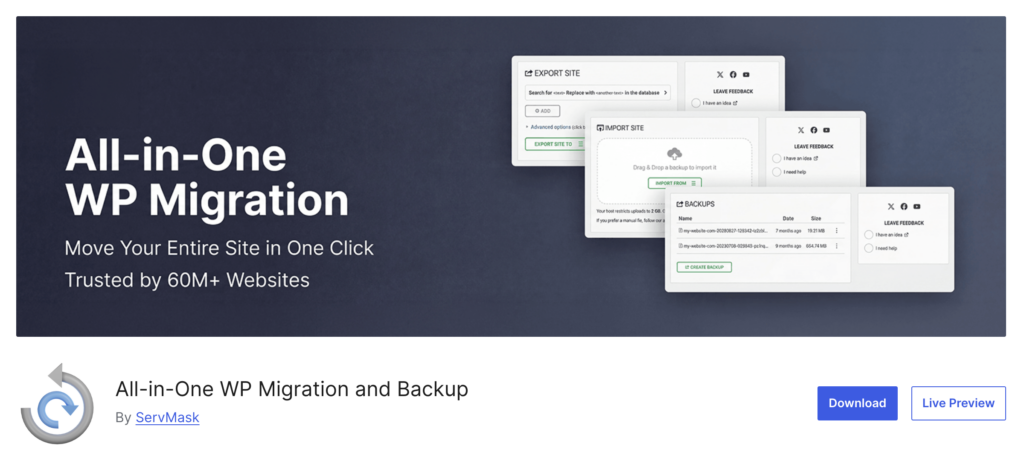 9. All-in-One WP Migration and Backup